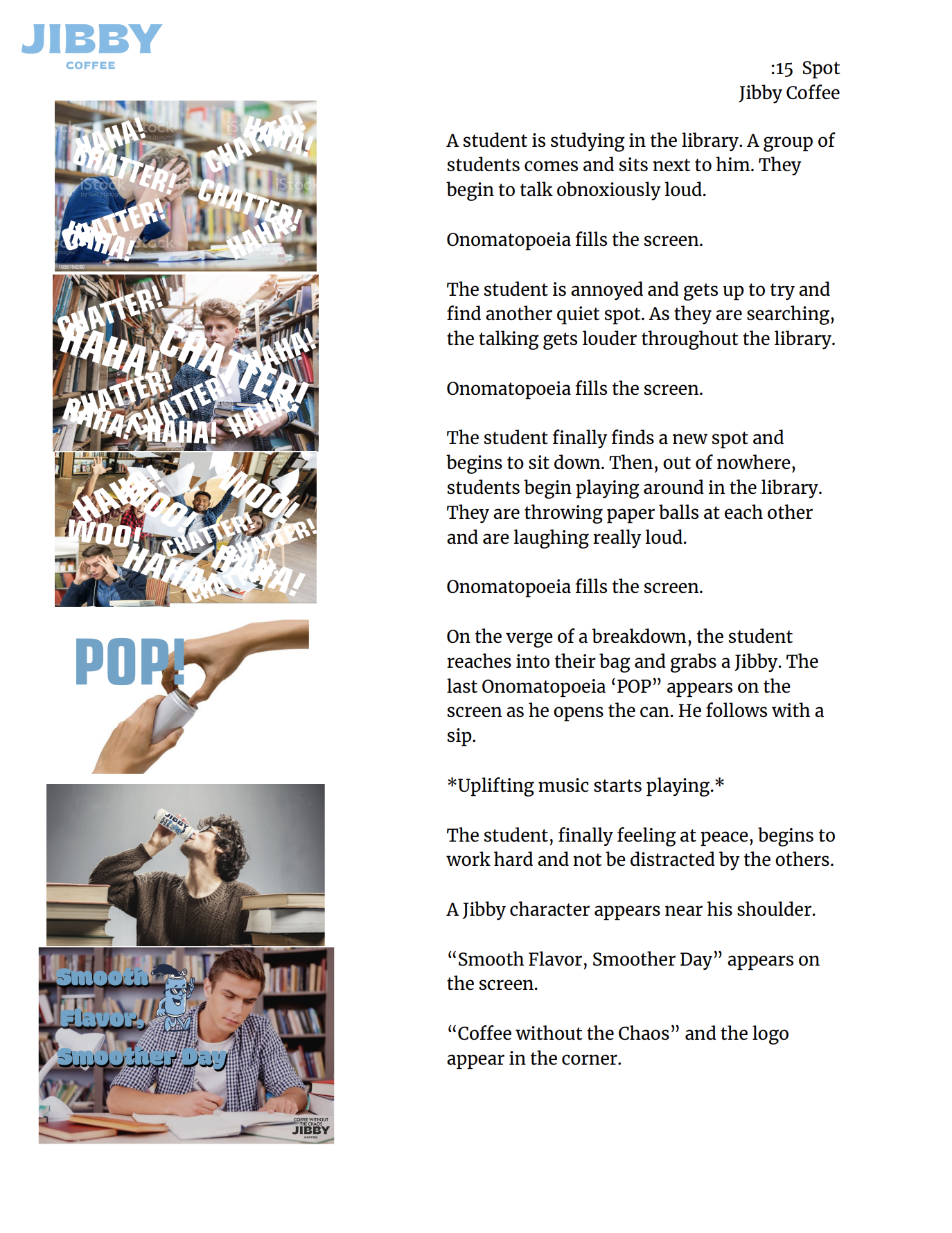 Multiple people will be holding a Jibby can while appearing to be calm. The camera will expand to show the chaos around them.